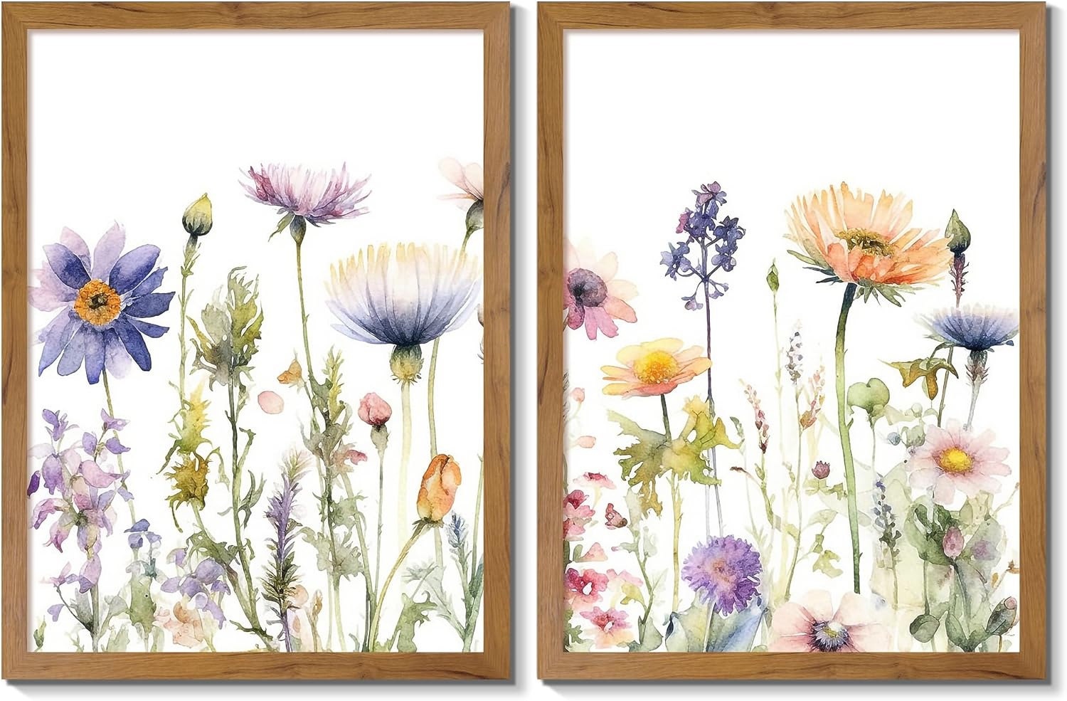 Gardenia Art’s framed watercolor prints bring vibrant purple daisies and lush green leaves to your space. Perfect for farmhouse, bedroom, or bathroom decor, these 2-piece sets add a fresh, colorful touch with easy-to-hang wooden frames.